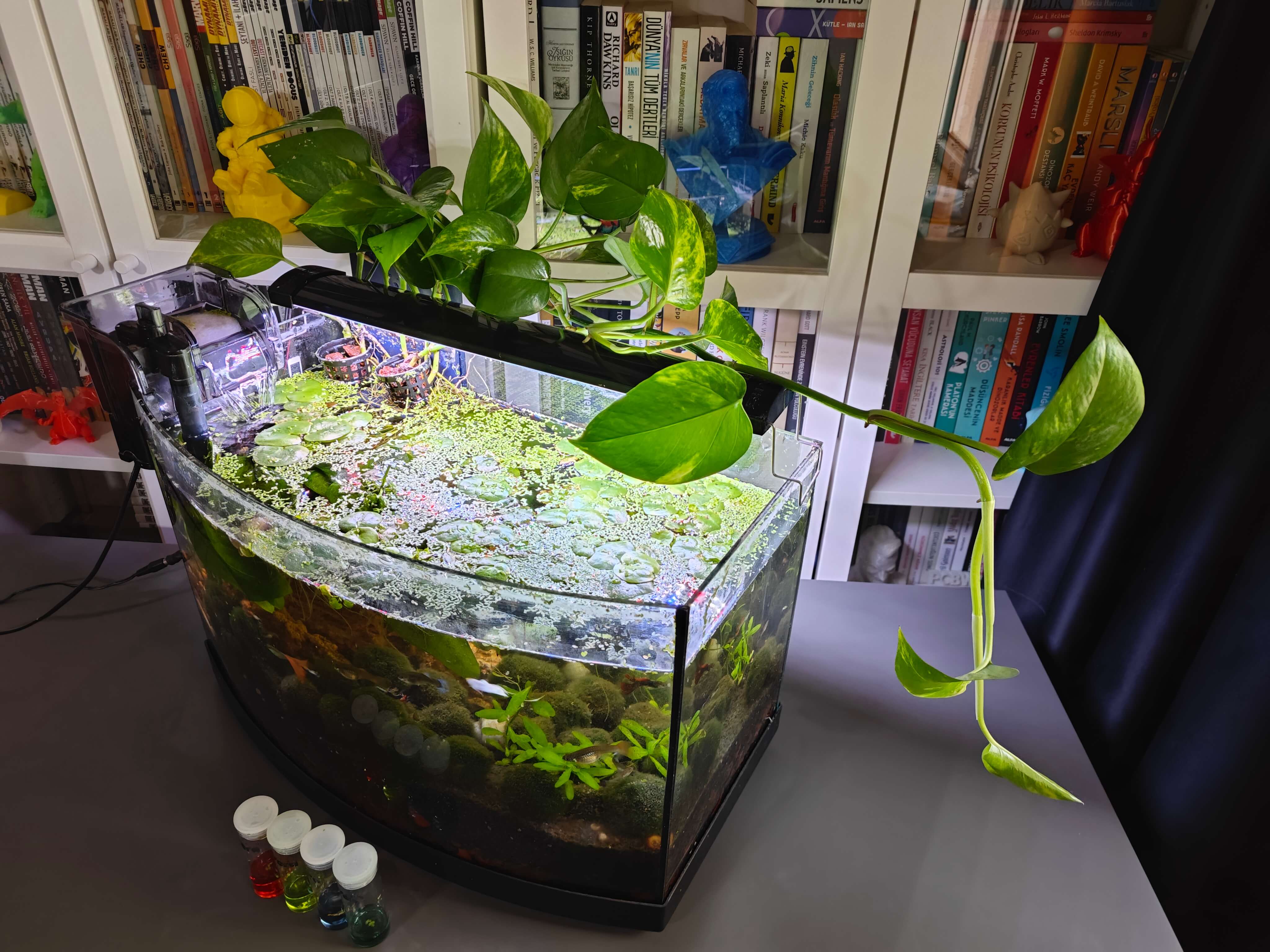 ก่อนที่จะเริ่มขั้นตอนการรวบรวมข้อมูลและการฝึกฝน Model ผมได้ค้นหาสภาพแวดล้อมทางธรรมชาติหรือที่สร้างขึ้นซึ่งแสดงให้เห็นถึงการขึ้นลงของความเป็นพิษในชั้นดินใต้น้ำเนื่องจากจำนวนประชากรที่หนาแน่นเกินไปและเศษซากที่เน่าเปื่อย อย่างไรก็ตาม ผมไม่สามารถหาตัวเลือกที่เหมาะสมใกล้บ้านเกิดได้เนื่องจากสิ่งมีชีวิตในน้ำที่ใกล้สูญพันธุ์ การทำลายที่อยู่อาศัยอย่างไม่หยุดยั้ง และการทิ้งขยะเคมีที่ส่วนใหญ่เกิดจากกิจกรรมของมนุษย์ ดังนั้น ผมจึงตัดสินใจจัดตั้งสภาพแวดล้อมทางน้ำจำลองขึ้นเพื่อจำลองฟองอากาศที่เป็นอันตรายในชั้นดินใต้น้ำและความเสี่ยงจากมลพิษทางน้ำที่อาจเกิดขึ้น หลังจากทำการวิเคราะห์อย่างละเอียดเกี่ยวกับสิ่งมีชีวิตในน้ำที่แพร่พันธุ์ได้ดีซึ่งผมสามารถจำลองสภาวะของฟาร์มปลาในตู้ปลาขนาดกลางได้ ผมจึงตัดสินใจตั้งตู้ปลาน้ำจืดที่มีพืชไม้น้ำสำหรับสายพันธุ์ที่อยู่ร่วมกันอย่างกลมกลืนและขยายพันธุ์ได้เร็ว ได้แก่ ปลาหางนกยูง (Guppies), กุ้งแคระ (Neocaridina shrimp), กุ้งเครย์ฟิชขนาดแคระ (Cambarellus Diminutus) เป็นต้น ในขั้นตอนต่อๆ ไป ผมจะอธิบายสิ่งมีชีวิตทั้งหมดในสภาพแวดล้อมที่มีการควบคุมของผม (ตู้ปลา) พร้อมคำแนะนำโดยละเอียด