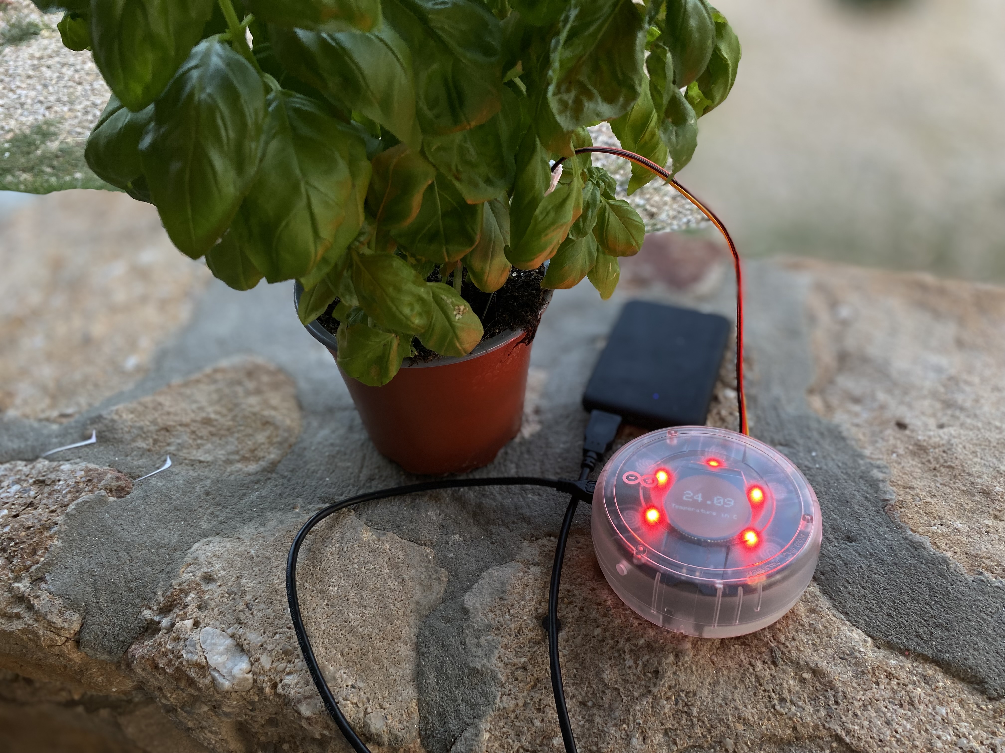 เราจะแสดงผลค่าที่วัดได้แบบเรียลไทม์ 5 ค่าบนหน้าจอของ MKR IoT Carrier คุณสามารถเลือกดูข้อมูลต่างๆ ได้โดยการใช้ 5 buttons บน Carrier: temperature, humidity, pressure, light level และ moisture (ของต้นไม้) โดยค่า temperature, humidity, pressure และ light level จะถูกวัดโดย sensor ที่ติดตั้งมาในตัวของ MKR IoT Carrier อย่างไรก็ตาม เราจะวัดค่า moisture ของต้นไม้โดยใช้ Capacitive Soil Moisture Sensor ซึ่งรวมอยู่ในชุด Oplà IoT Kit จากนั้นเราสามารถตรวจสอบข้อมูลทั้งหมดนี้ได้ผ่านหน้าจอของ MKR IoT Carrier (ซึ่งรวมอยู่ใน Oplà IoT Kit) หรือผ่าน Arduino Cloud Dashboard ใน 4 ขั้นตอนถัดไป ผมจะแสดงให้คุณเห็นถึงวิธีการตั้งค่า cloud thing, การเขียนโปรแกรมใน cloud (+ คำอธิบายการทำงานของ code) และวิธีการตั้งค่า Cloud Dashboard เพื่อให้เราสามารถตรวจสอบทุกอย่างผ่านอุปกรณ์อย่างเช่น smartphone ได้