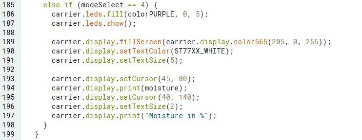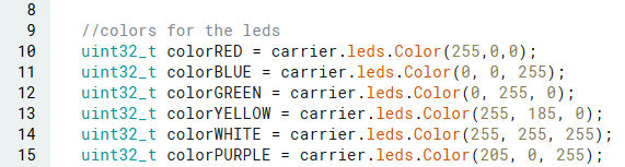 หลังจากนั้น เราจะเพิ่มสี 6 สีสำหรับ led บน IoT Carrier ซึ่งจะแสดงผลในแต่ละโหมดที่กำหนด (รวมถึงในช่วงการตั้งค่า)