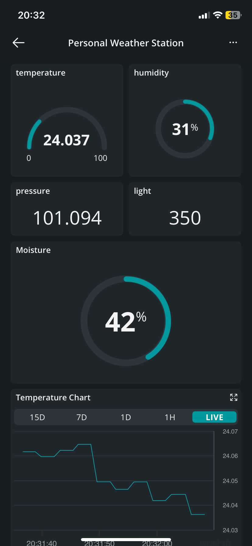ในโปรเจกต์นี้ เราสามารถสร้างสถานีตรวจวัดสภาพอากาศที่เรียบง่ายแต่ยอดเยี่ยมได้โดยใช้ Oplà IoT Kit เราได้ตั้งค่า sensor ต่างๆ ร่วมกันเพื่อวัดค่า temperature, humidity, pressure, light level และ moisture พร้อมทั้งเชื่อมต่อทุกอย่างเข้ากับ Cloud เพื่อให้สามารถเข้าถึงข้อมูลจากระยะไกลผ่าน dashboard ที่ปรับแต่งเองได้ ตลอดเส้นทางนี้ เราได้เรียนรู้วิธีการแสดงผลข้อมูลบนหน้าจอของ MKR IoT Carrier Rev 2 และเรียนรู้เกี่ยวกับบอร์ด MKR WiFi 1010 ผมหวังว่าคุณจะสนุกกับการสร้าง เขียน Code และทำโปรเจกต์นี้! หากเป็นเช่นนั้น อย่าลืมแชร์โปรเจกต์นี้หรือแสดงความคิดเห็นทิ้งไว้ ผมตั้งตารอที่จะสร้างสรรค์โปรเจกต์ที่สนุกและน่าสนใจยิ่งขึ้นสำหรับทุกคนที่มีใจรักใน arduino! ขอบคุณที่ร่วมเป็นส่วนหนึ่งของโปรเจกต์นี้ครับ! บายบาย!