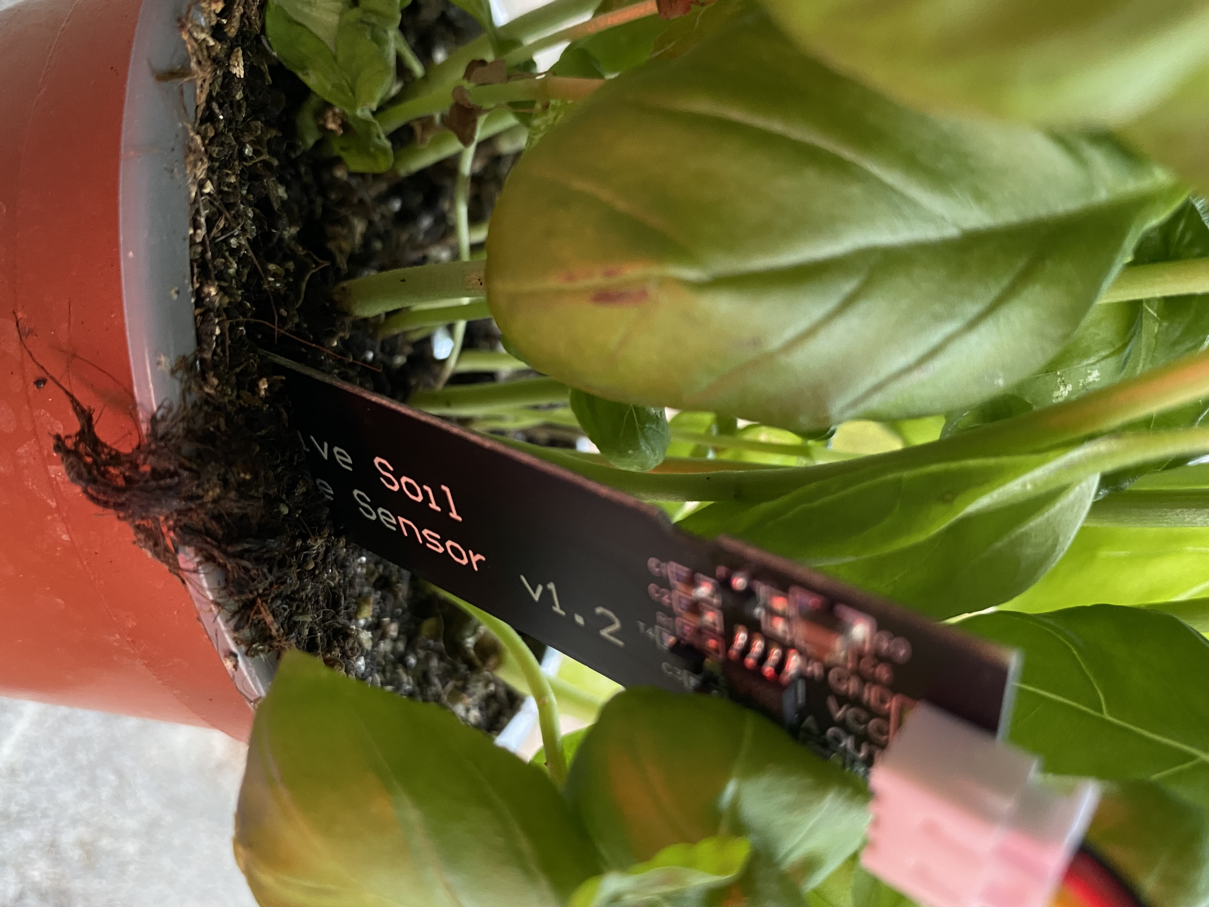 4. ปัก Capacitive Soil Moisture Sensor ลงในกระถางต้นไม้ เพื่อให้ sensor สามารถเก็บข้อมูลได้