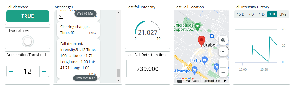 ทั้งหมดนี้จะถูกมอนิเตอร์และควบคุมโดย Dashboard บน Arduino IoT Cloud ซึ่งเราจะสามารถดูข้อมูลการล้มครั้งล่าสุดและข้อมูลย้อนหลังได้ นอกจากนี้ เรายังสามารถล้างสถานะการตรวจจับการล้มได้ด้วยปุ่มกด